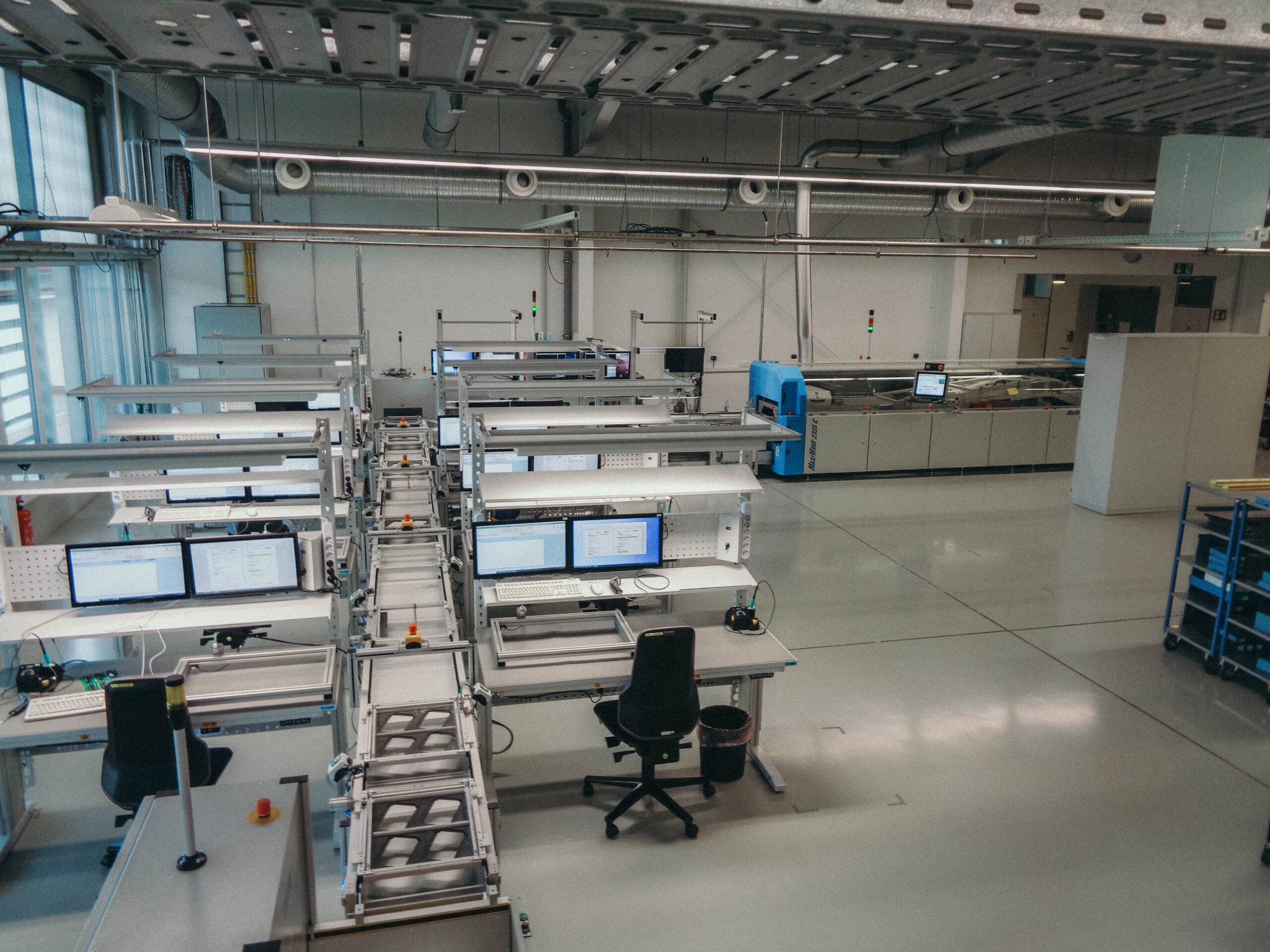 Vielen Dank an Anna, Tobias und Jürgen, die hauptverantwortlich für die Inbetriebnahme der neuen Maschinen zuständig waren und richtig Gas gegeben haben! Außerdem haben sie entsprechend unserer Firmentradition die Linie auch getauft, wir stellen also vor: die Transportstrecke “Happy”, die AOI “Mini” und die Wellenlötanlage “Maxi”!